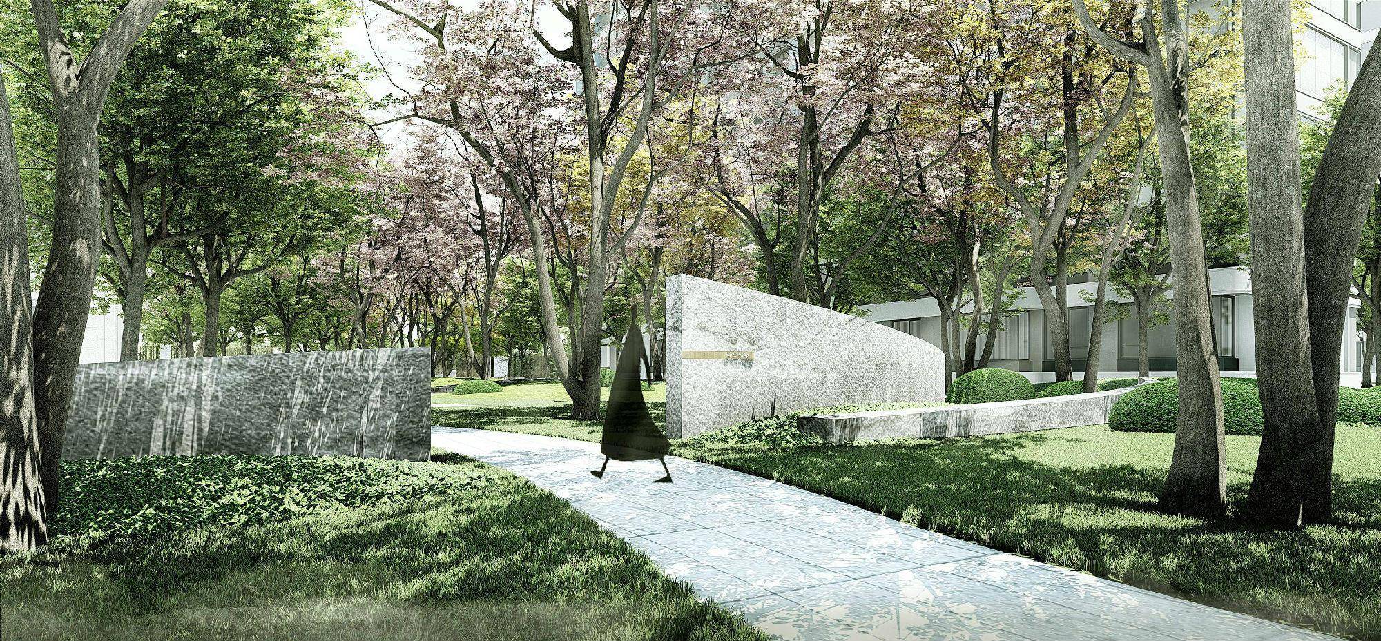 为了增加会客体验感,将廊架落于镜面水景之上,会客厅和树阵倒映在水中,仿佛会客厅生长在树林立面,清风拂面、树影斑驳,而且还是一个集读书、会客于一体的休闲场所。