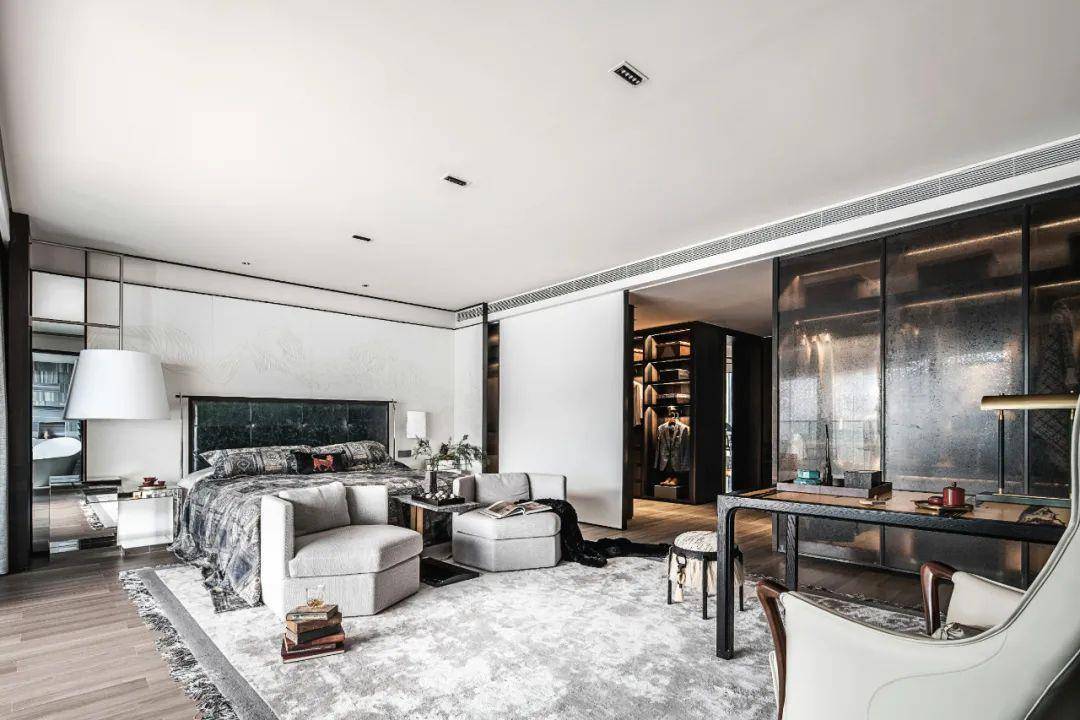 大平层豪宅对于空间感受的需求还体现在主卧空间和布局上。